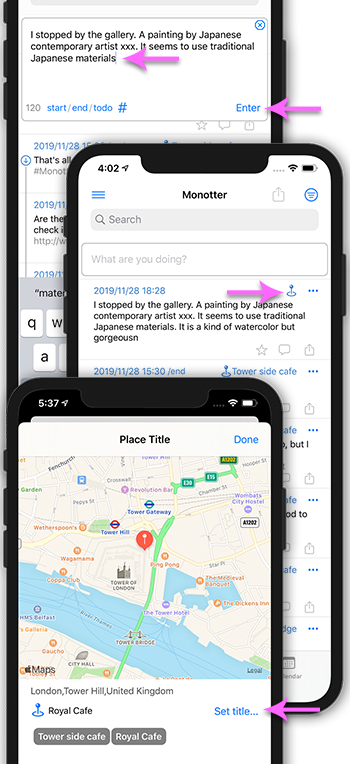If you name the place, the place name will be automatically assigned to entries in the same place.