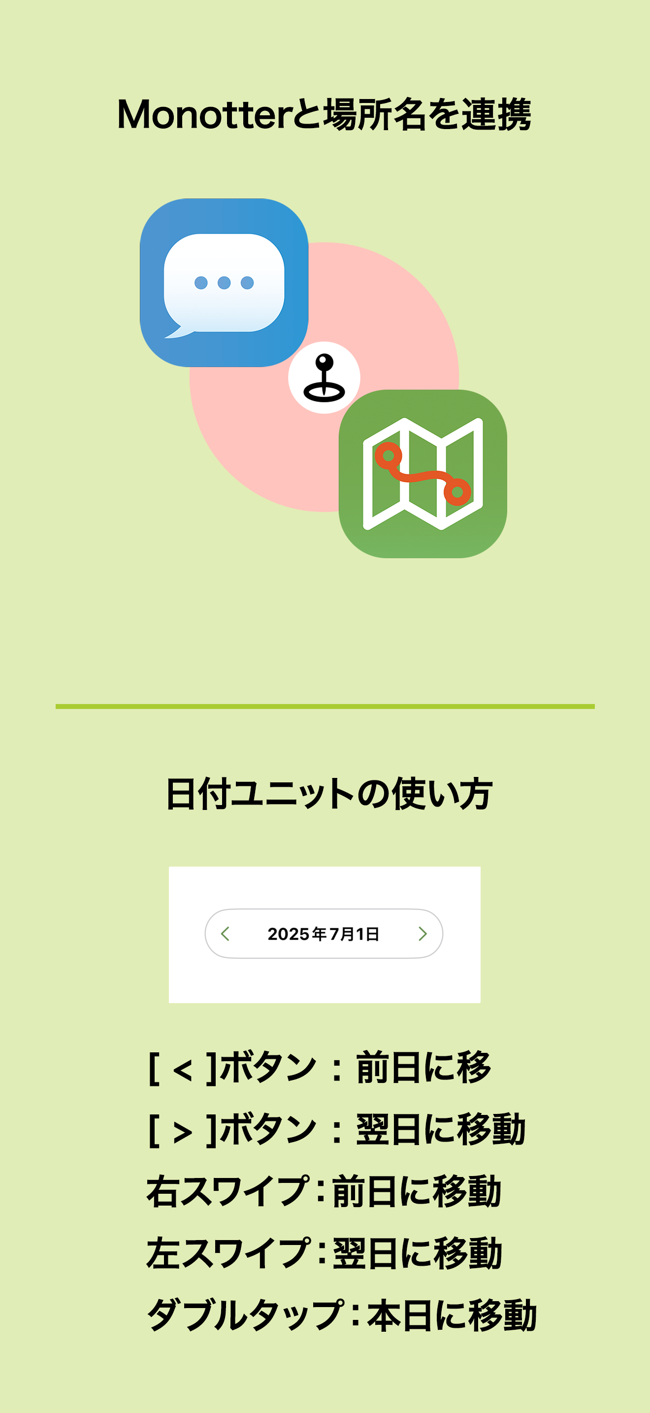 一度場所名を登録すれば、次回以降同じ場所に滞在した時は自動でその名前が表示されます。 ※事前に用意された場所名データはありません。必要に応じて、ご自身で場所名を登録してください。