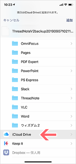 ファイルをiCloud DriveからThreadNoteのバックアップへコピーする方法